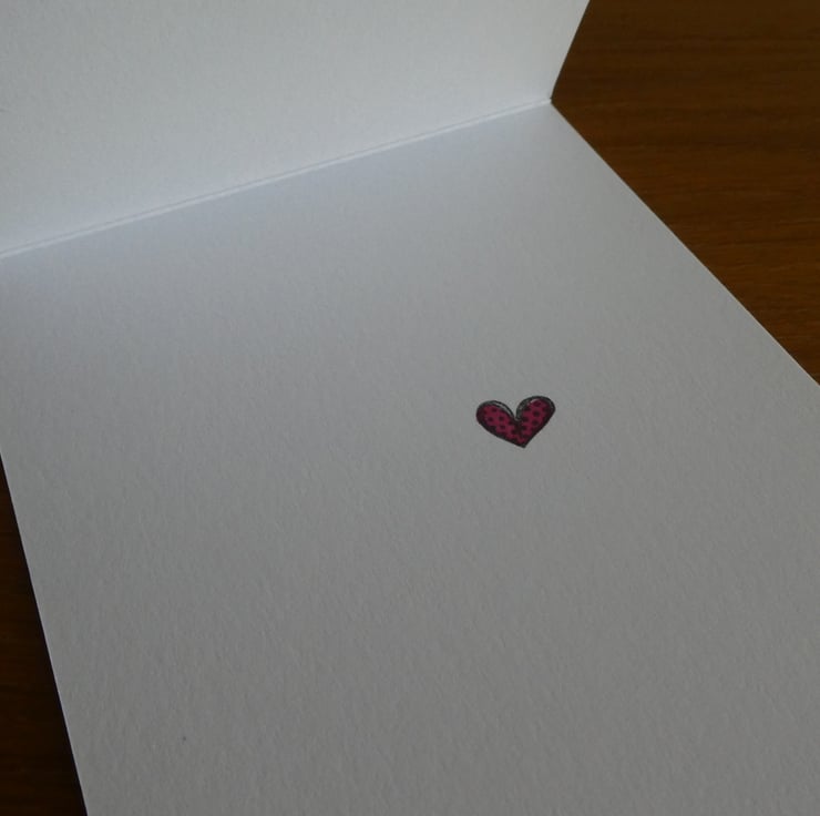 The inside of the card is hand stamped with a red heart leaving plenty of space for your own message.