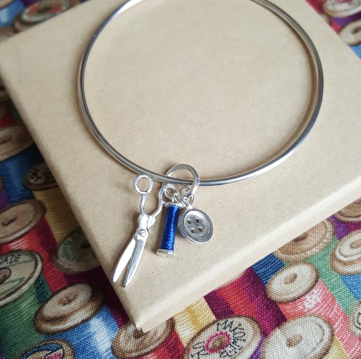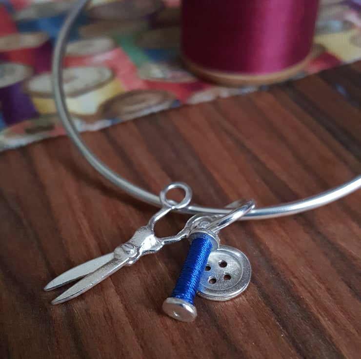 Sterling Silver Bangle with Sewing Charms.