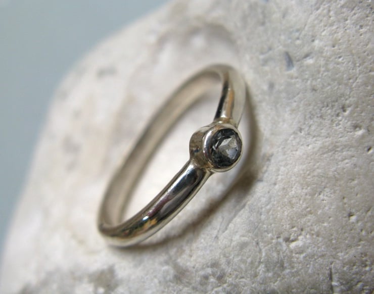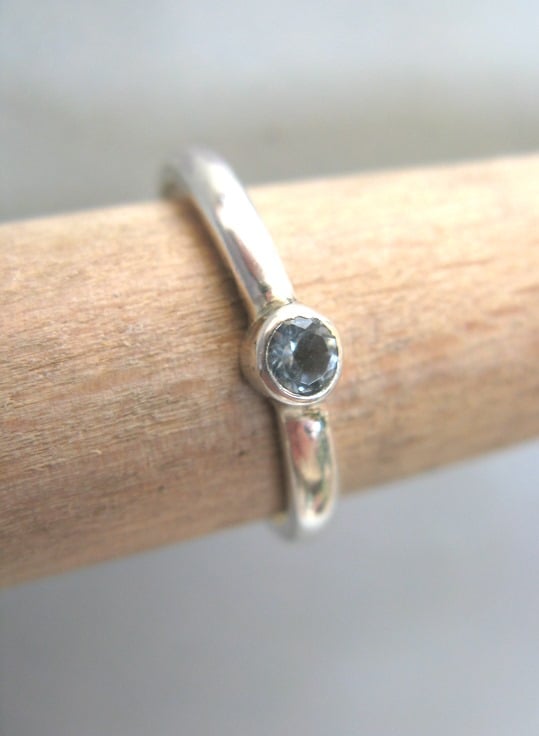 This pretty little ring is made from sterling silver with a sparkling faceted aquamarine gemstone. Looks lovely on its own, or is perfectly suited as a stacking ring.