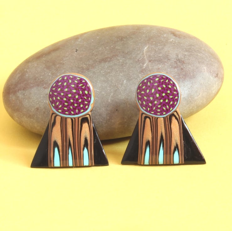 Hand Crafted Ear Studs - Modern Space Age Style