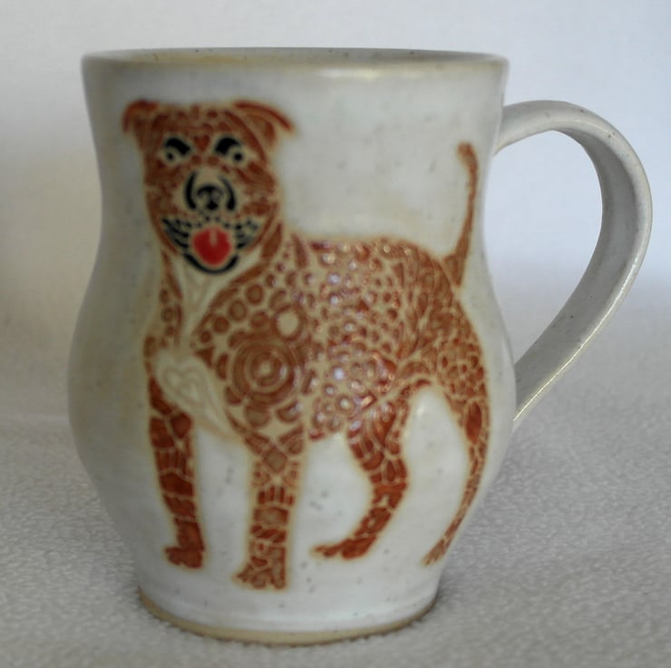 19-45 Handmade Stoneware Mug with Staffordshire Bull Terrier SBT