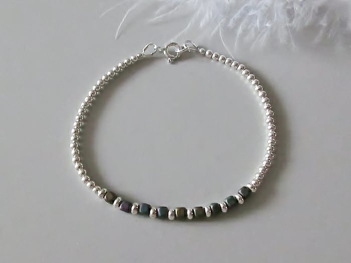 For this pretty layering bracelet I've chosen rounded matte rainbow finished Hematite cube beads which are approximately 3mm in size.