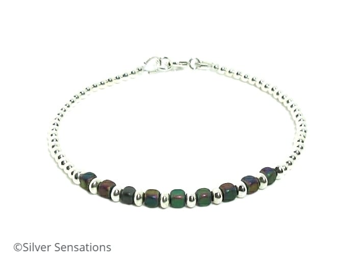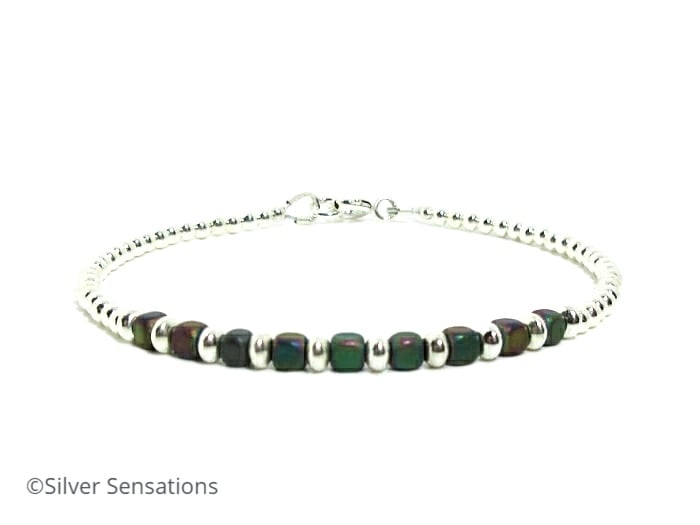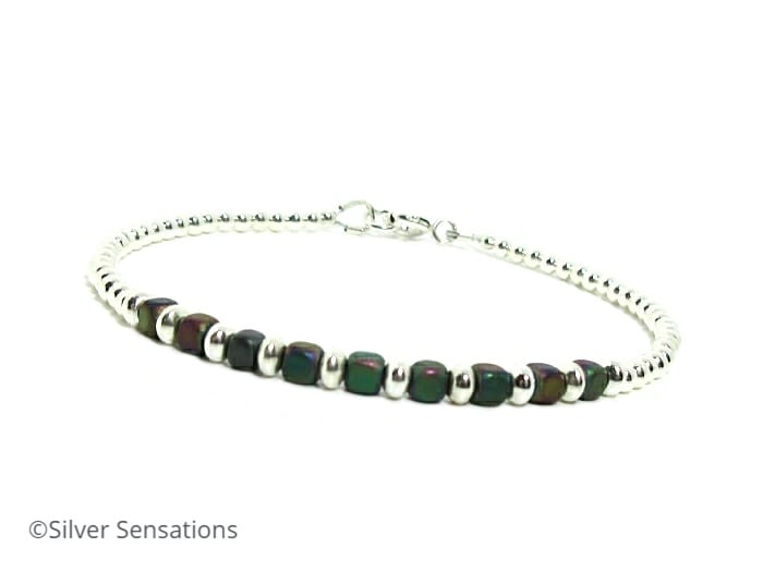 Dainty Rainbow Hematite Cubes Bracelet With Sterling Silver Beads