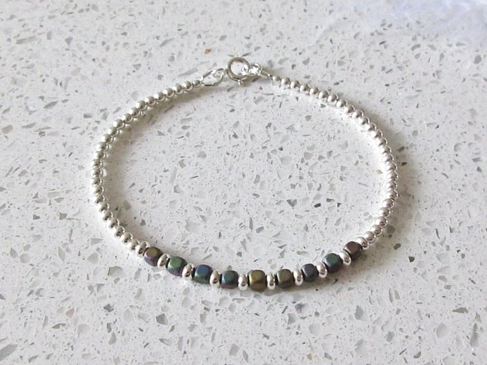 For this pretty layering bracelet I've chosen rounded matte rainbow finished Hematite cube beads which are approximately 3mm in size.