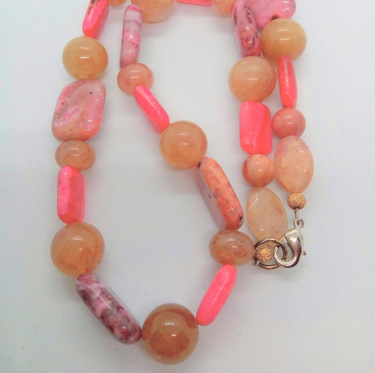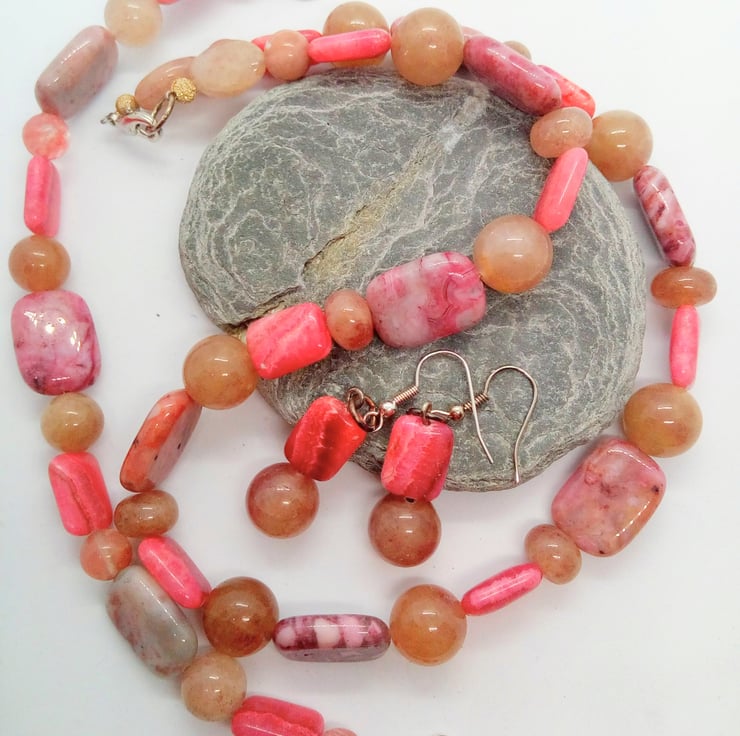 Pink Jasper and Raspberry Quartz Beaded Jewellery Set, Semi Precious Jewellery