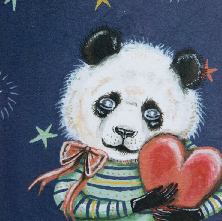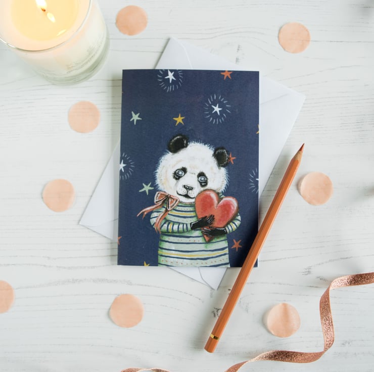 An A6 blank greeting card featuring Kevin who is a contented little Panda bear. Kevin the panda has been designed and illustrated by myself.