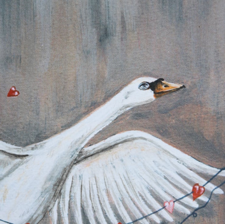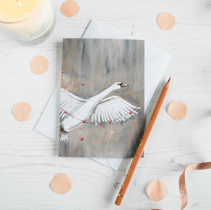 This is a pretty self illustrated A6 greeting card of Sydney the flying swan. The swan card is ideal for lots of occasions including Valentines, Mothers day, Birthday, Thank you, anniversary etc etc.