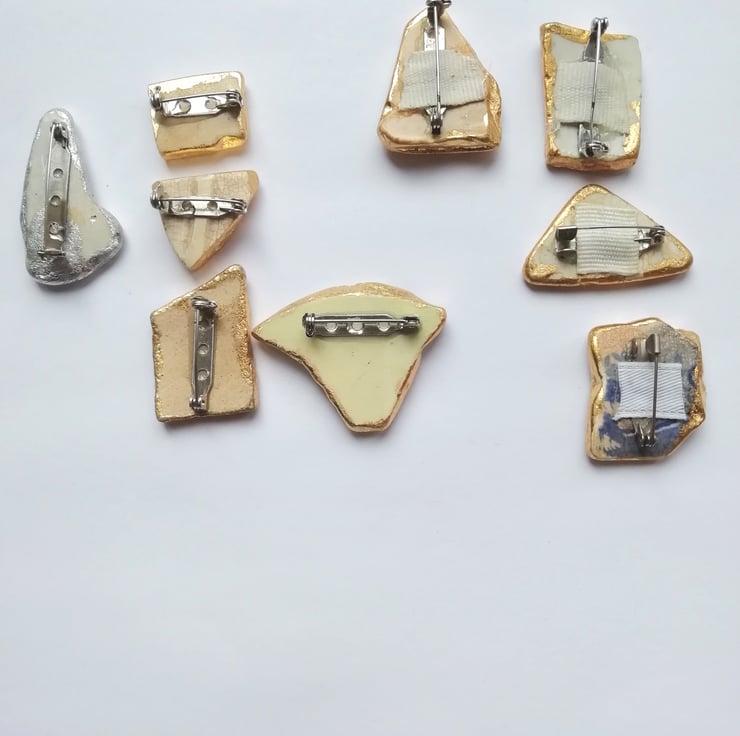 I love to create little keepsakes using my beach finds. This sea smoothed old pottery I have transformed, with gold into a new brooch.