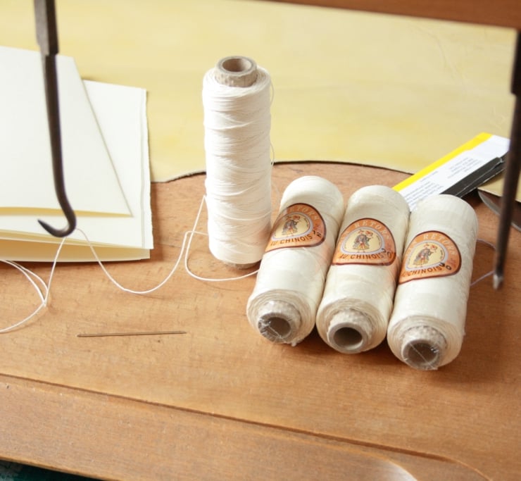 The higher the number, the thinner the thread. No.s 10 and 12 are fairly thick threads, and would be suitable for binding a book with voluminous paper, or with a binding style that asks for a considerable swell in the spine. A thicker thread is also welcome if your binding will be exposed, and you want to emphasis the sewing.