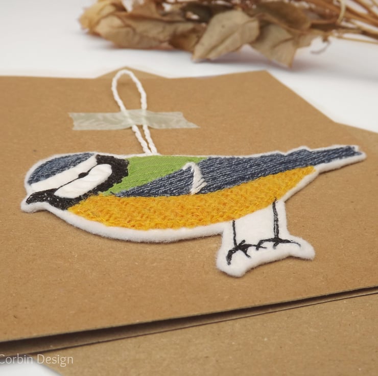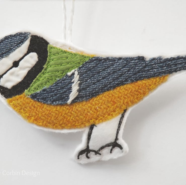The Blue Tit - Embroidered Hanging Decoration