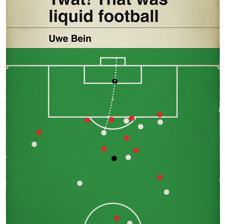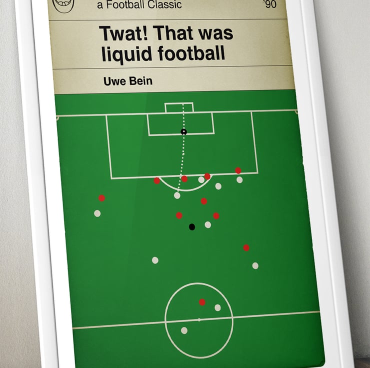 This version depicts the screamer scored by Uwe Bein for West Germany against the United Arab Emirates at Italia 90. West Germany ran out convincing 5-1 winners on the night and went on to lift the World Cup trophy.