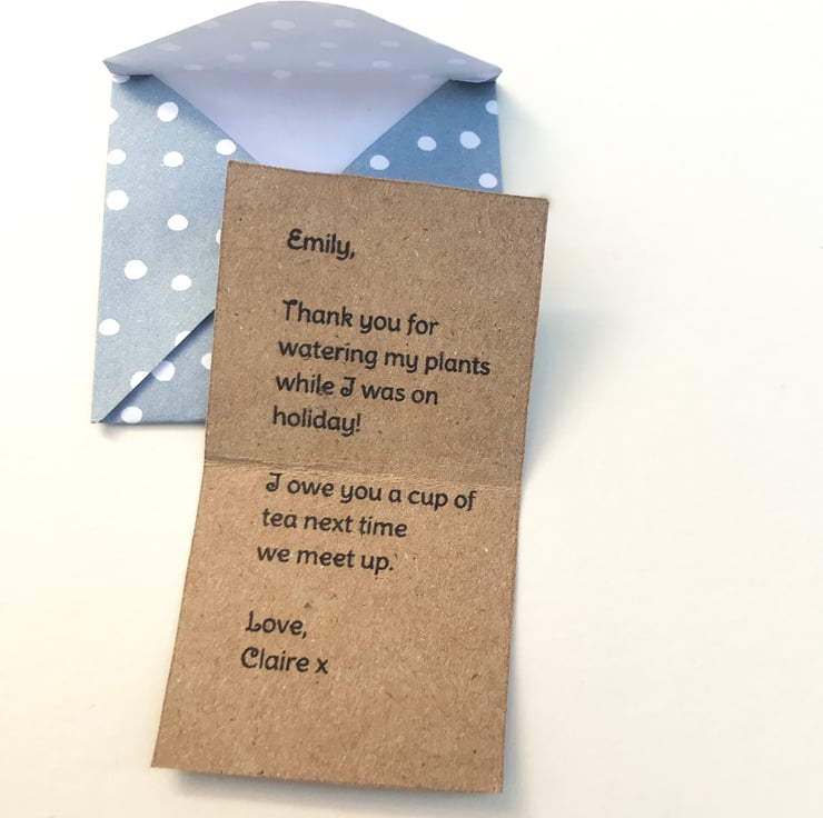Please note that your message will be written exactly as you enter it into the box and will be sent in the envelope provided with the card.