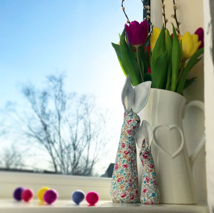 Bright and soft Easter Bunny to decorate your Easter table! Nothing says spring like colourful flowers, pastel decorations and a little cute bunny. Beautiful seasonal update for your home. This rabbit will look incredible in flower arrangements and centrepiece decorations.