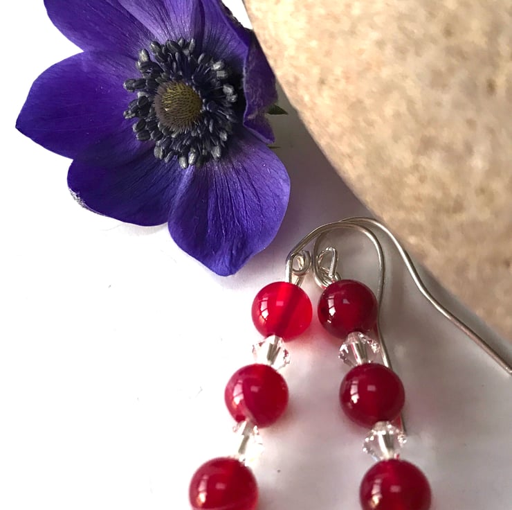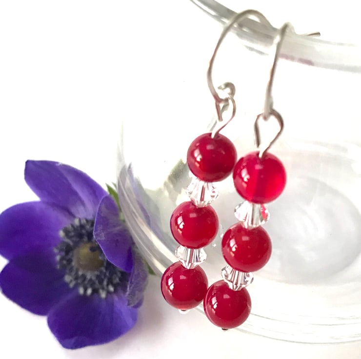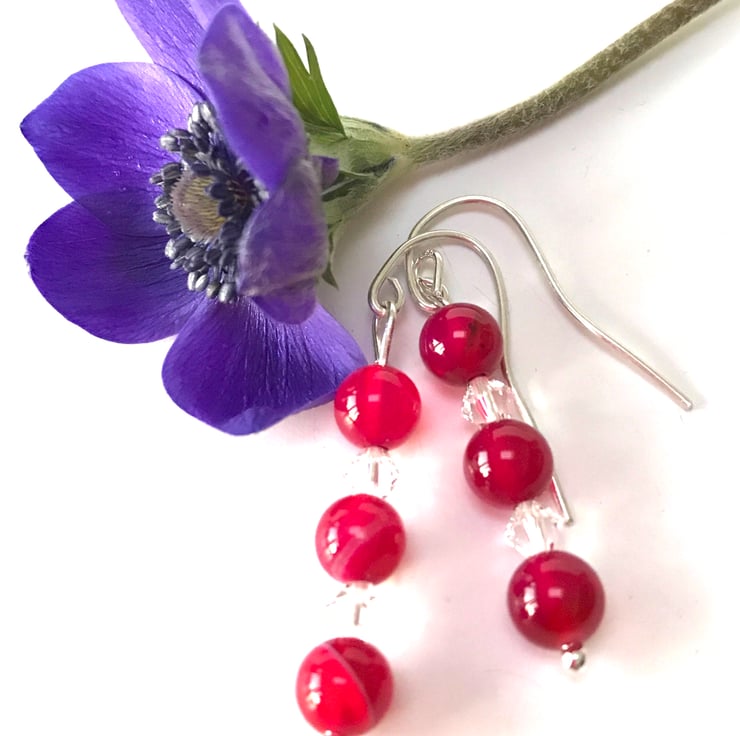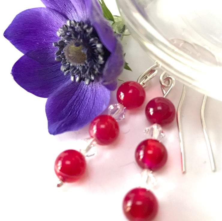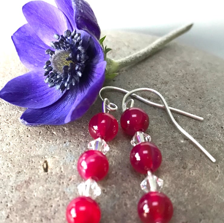 These elegant earrings are made from sterling silver with fuchsia pink agate gemstones and Swarovski crystals. They have handcrafted sterling silver fittings. The perfect gift for any occasion.