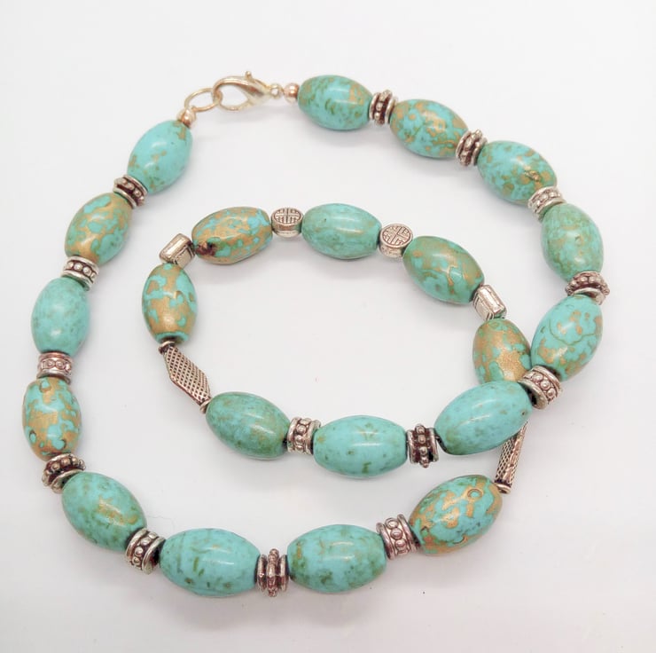 Turquoise & Silver Spacer Beaded Jewellery Set, Necklace, Bracelet, Earrings, Accessories, Birthday Gift, Anniversary Gift, Gift for Her
