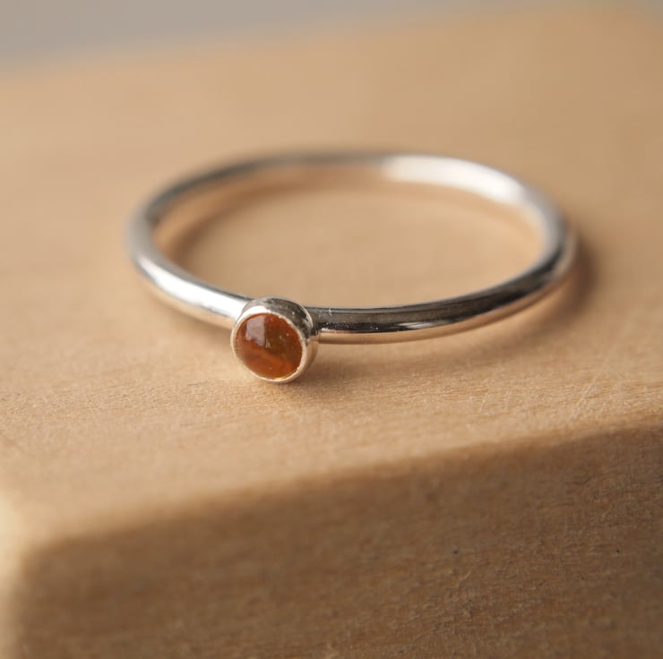 Sterling Silver and Citrine Birthstone Ring. A yellow Citrine round gemstone is carefully sent onto a round wire band of Sterling Silver to create this simple minimalist Ring. The ring is designed to stack with any ring in my collection. Citrine is also the Birthstone for November - perfect for anyone with a birthday in this month.