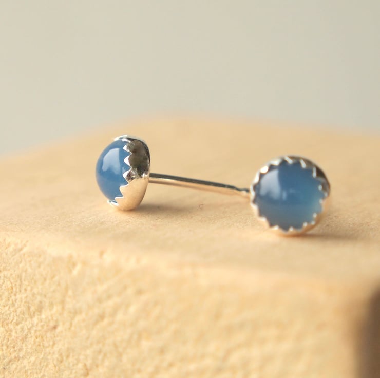 5mm sized Blue Agate gemstones set into a surround of Sterling Silver.