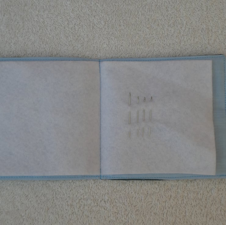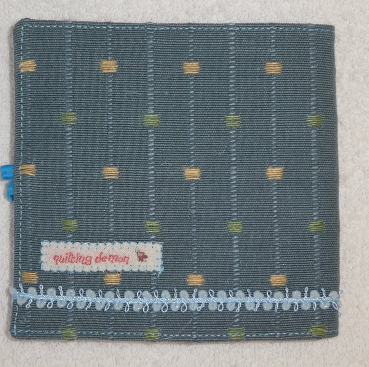 I have created this lovely sewing needle case from a lovely upholstery weight print cotton. It has an applique decorative panel and embellished with braid. The needle case is lined in a plain blue cotton fabric, has interfacing for structure and has a felt insert to keep your needles safe. The case has a printed wooden button and elastic to close, and is top stitched for a professional finish. The needles shown in the picture are included.
