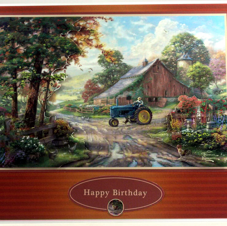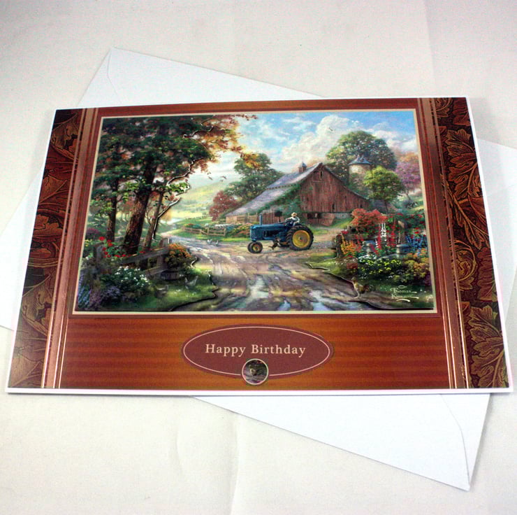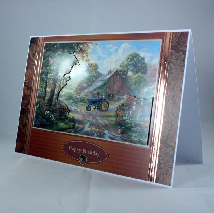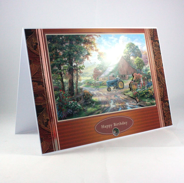 A5 card featuring a farmer on his tractor in an autumnal farming scene.