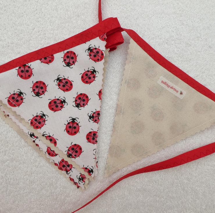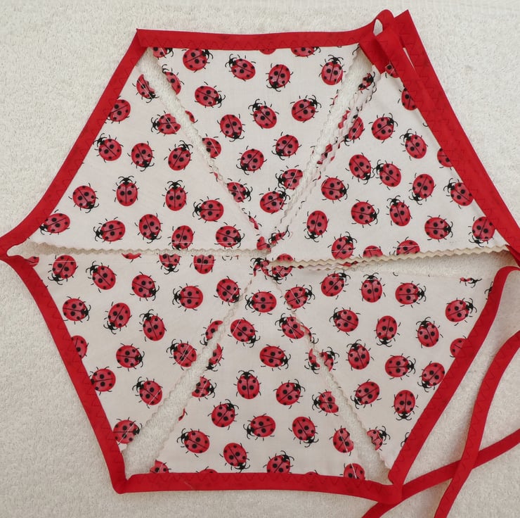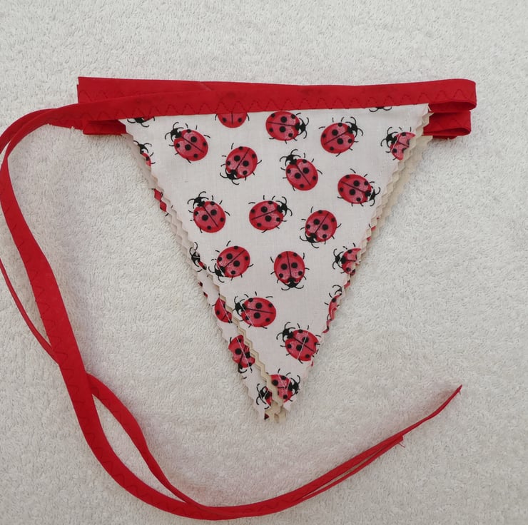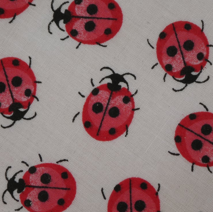This bunting is made from a lovely ladybird print poly/cotton fabric. This fantastic bunting would make a great addition to your home. It could be used for summer barbecues, camping trips or to use indoors.