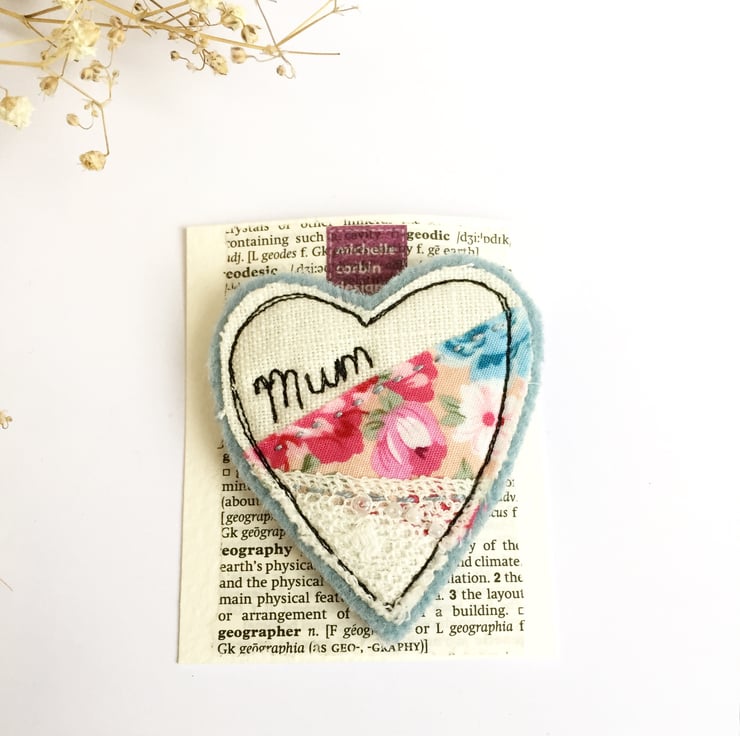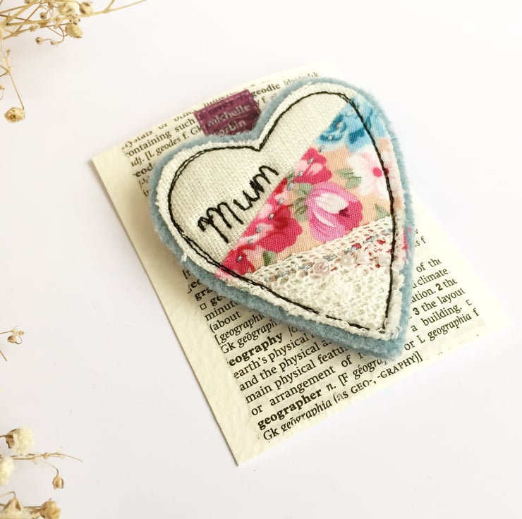 The fabrics are stitched onto a wool felt base and a Brooch Bar is stitched to the reverse. It will be the perfect addition for Mums outfit.