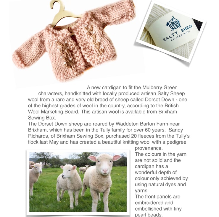 Mulberry Green is all about a time, now gone, but not so very long ago, when children had a great deal of freedom to explore their surroundings and use their imagination in play. A time when the world moved at a slower pace and things were made to last. To celebrate this heritage, wherever possible, I use traditional crafts and materials to create my dolls and outfits.