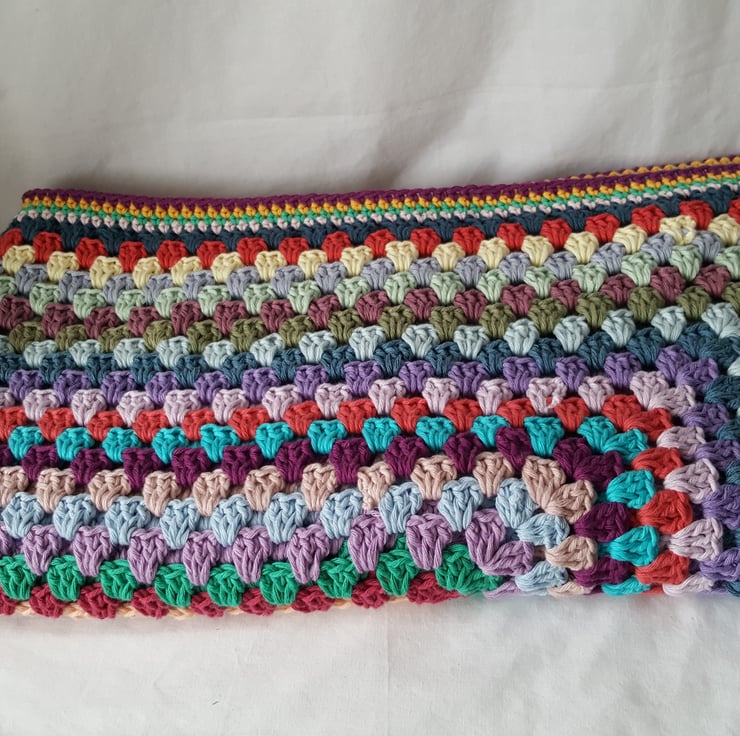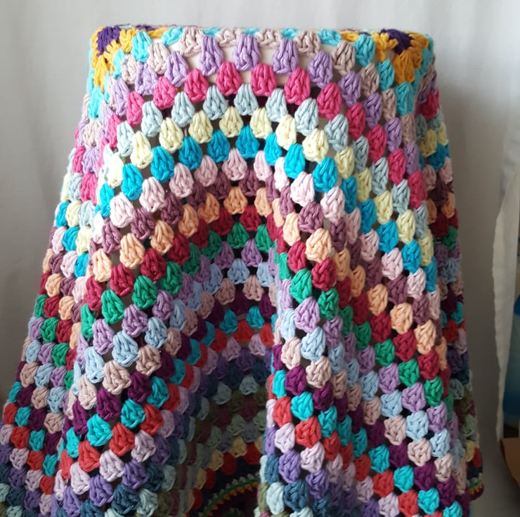 This is quite a heavy blanket due to me using cotton yarn, it weighs nearly a KG, so it drapes beautifully.