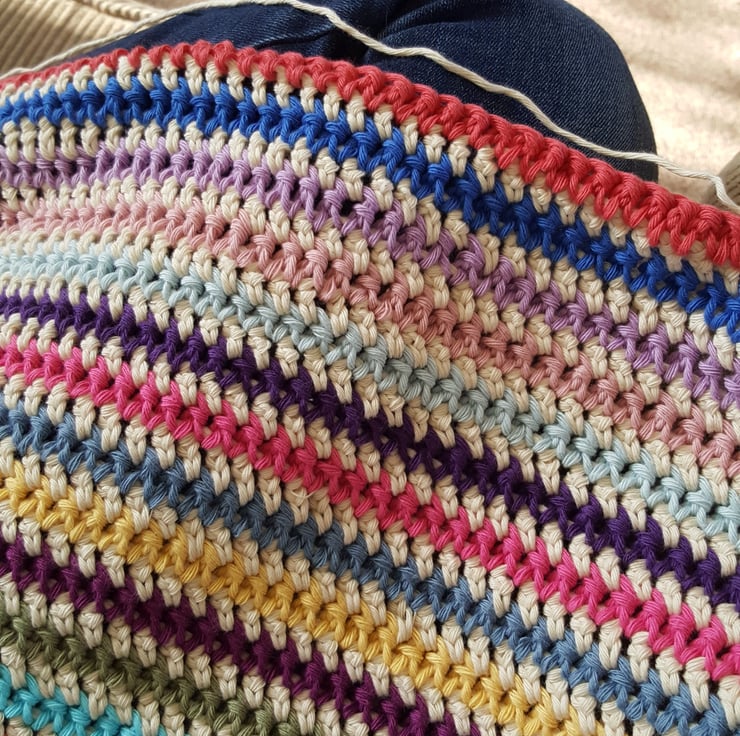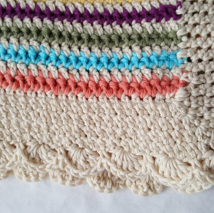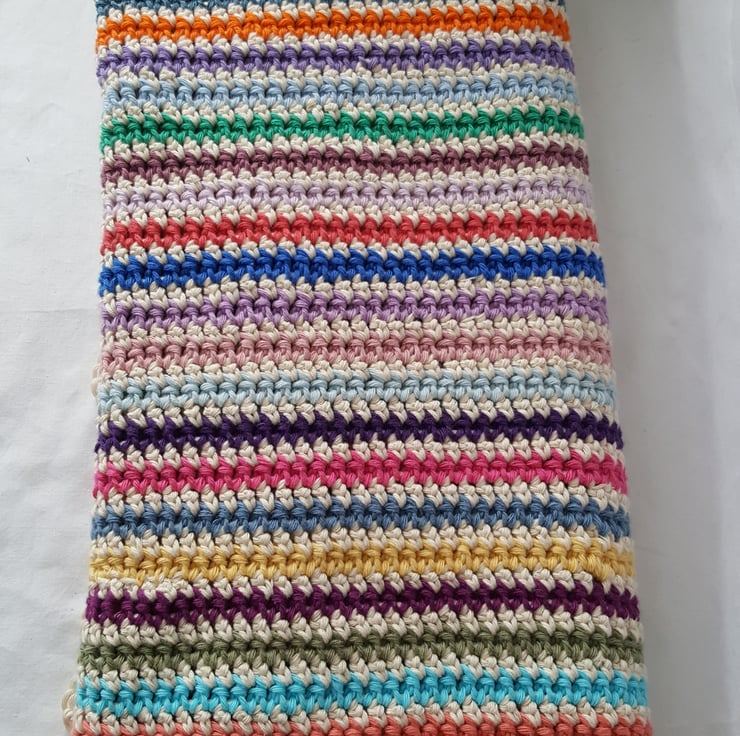 I've used over 40 different colours for this piece and crocheted a fluted edge.