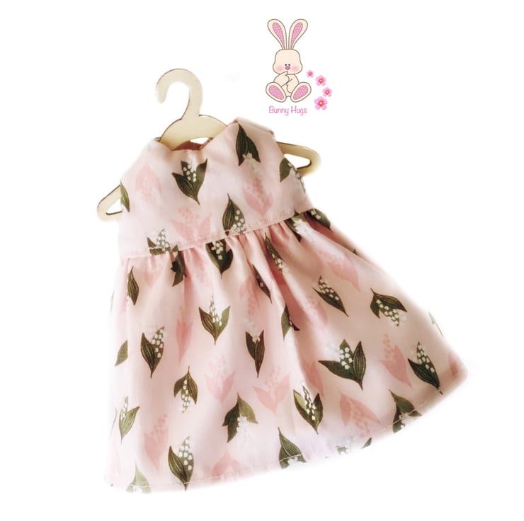 A really lovely lily of the valley print dress to fit the Mulberry Green characters. The dress is made from best quality cotton and has a lined bodice. It comes with a cute little wooden hanger.