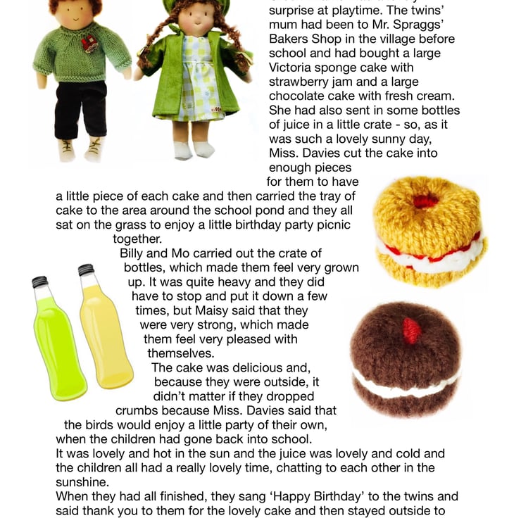 There are other children in Maisy’s class at Mulberry Green Infants’School - Violet, Billy, Amber, Rose, Ruby, Marigold, Tilly, Amelia and twins Oliver and Olivia. The children are all 28cm tall, Baby Daisy is 16cm and Molly the dog is just 8cm. Maisy and Mo love nothing more than having adventures with their friends.