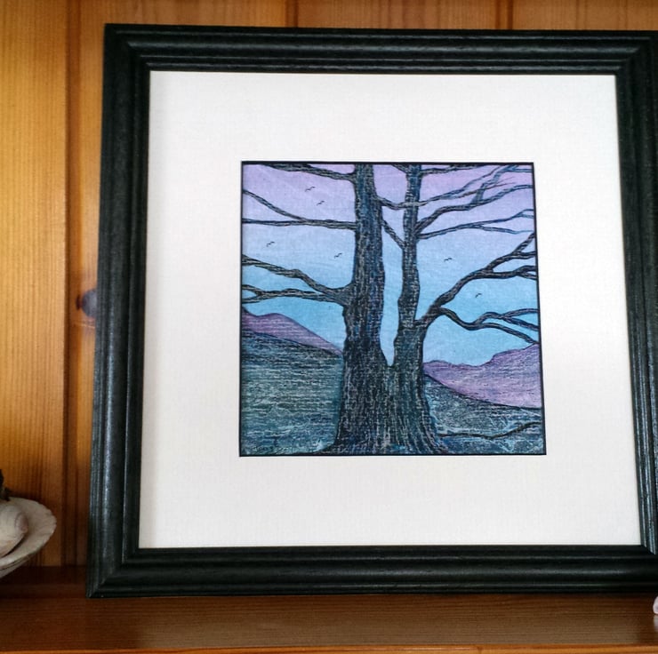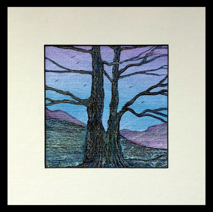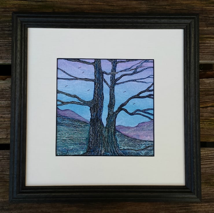Tranquillity is a unique, original framed CD size painting created with watercolours and a touch of inktense, An imaginative wee dreamscape with a calm, tranquil atmosphere. We all need some tranquillity in our lives.