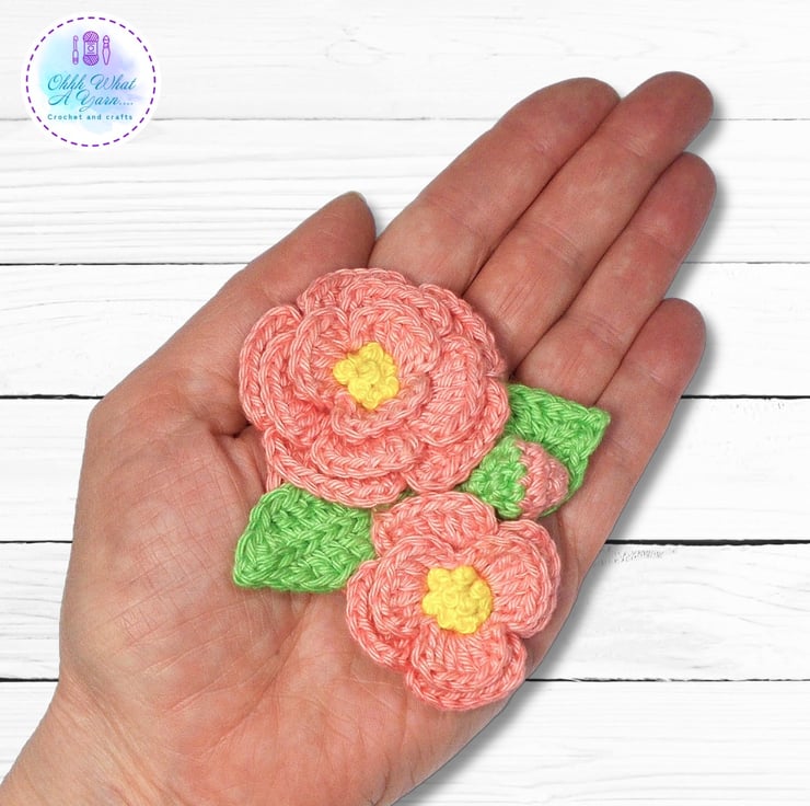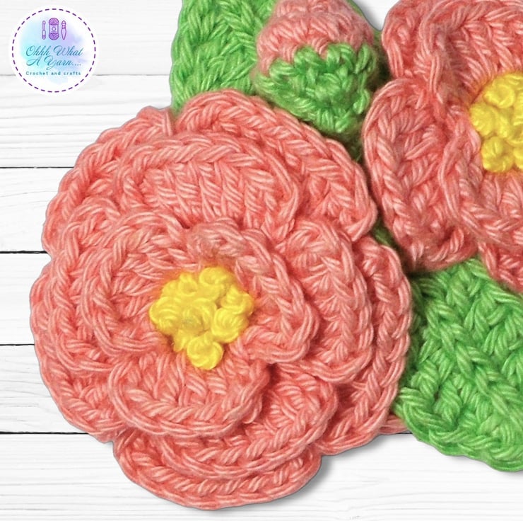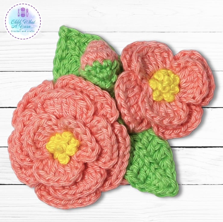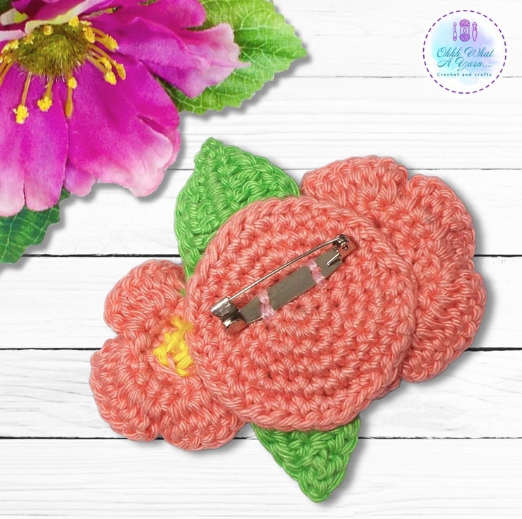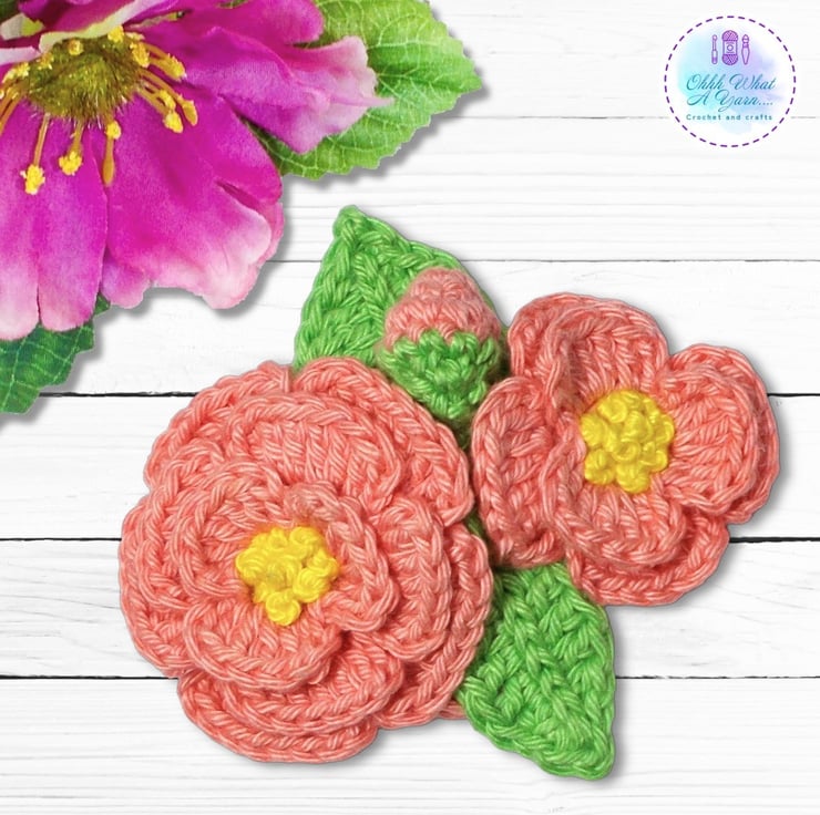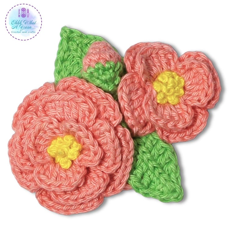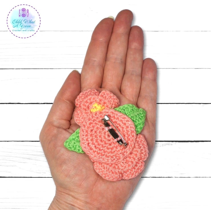 This pretty floral brooch has been crocheted with Scheepjes Catona mercerised cotton yarns which gives it a lovely sheen and stitch definition.