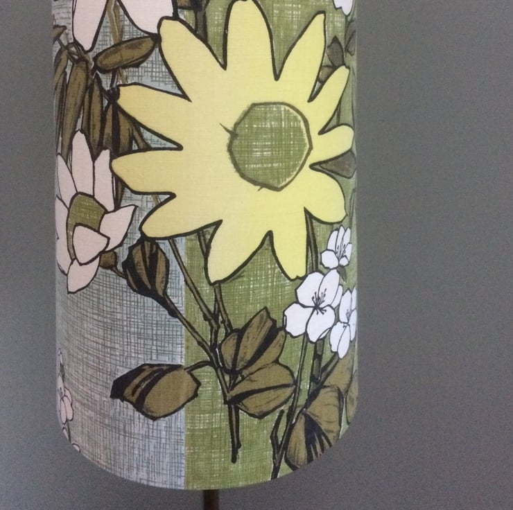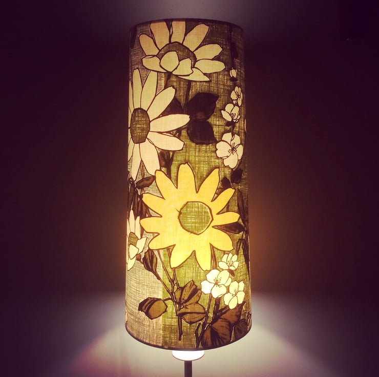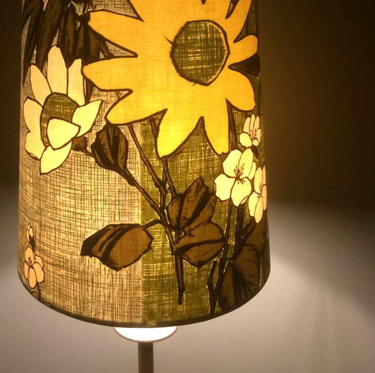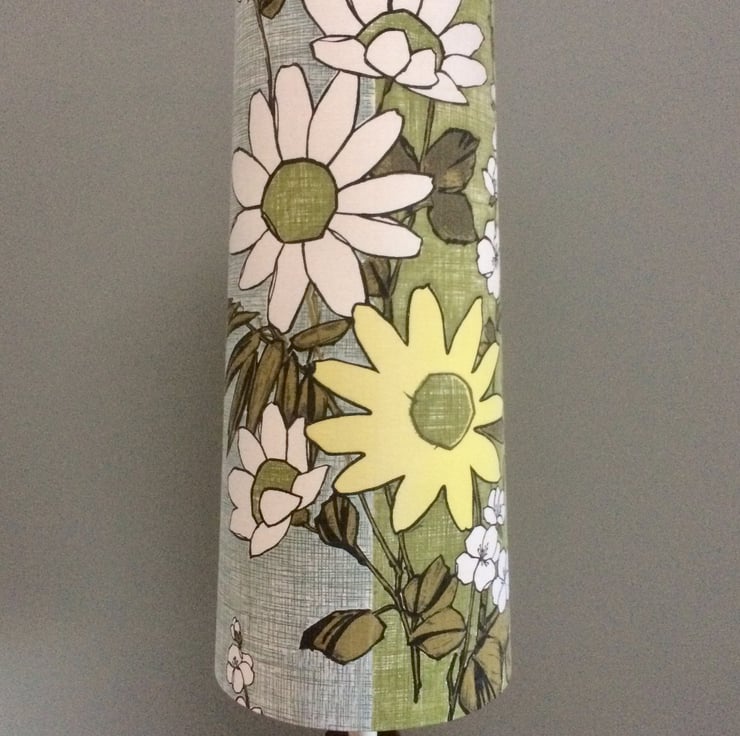 DAISY Tall RETRO CONEs 60s 70s Vintage Fabric Lampshade . Fabric design is ' Marguerite' .
