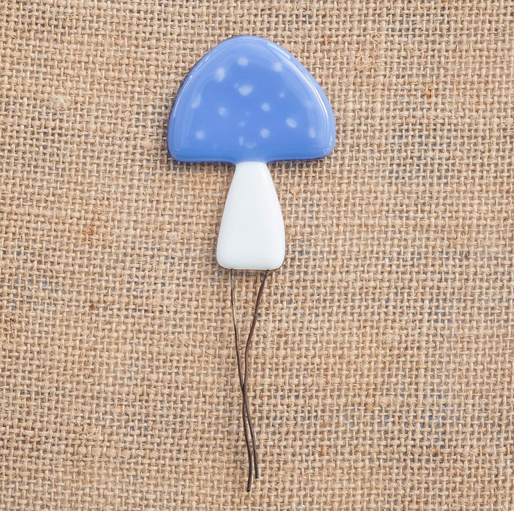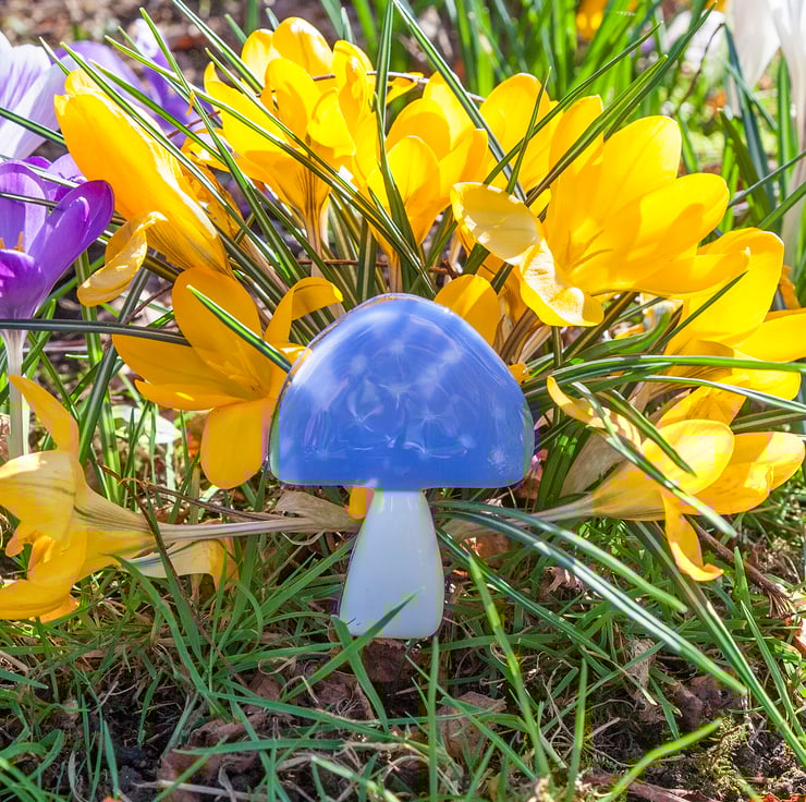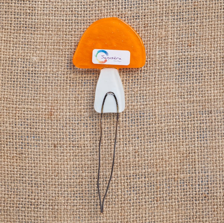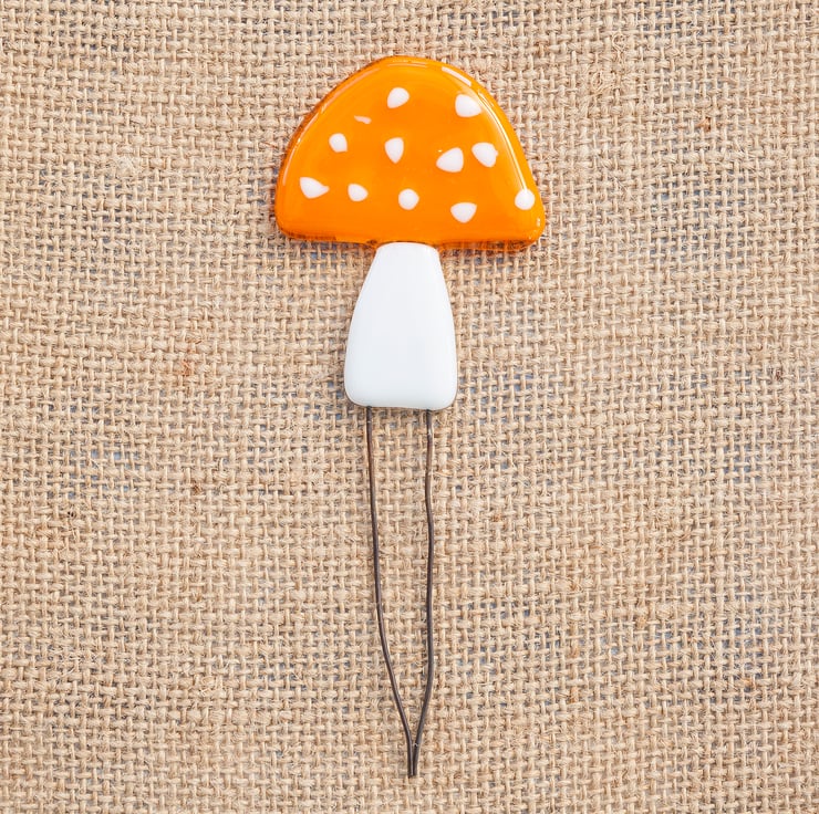 Give your garden pots a bit of extra interest with these colourful fused glass toadstool decorations. Each one has been cut by hand, layered and fused in a kiln. The mushrooms can be easily inserted into soil by two nichrome wire posts. Nichrome wire is very resistant to corrosion and oxidisation so they should last you a long time.