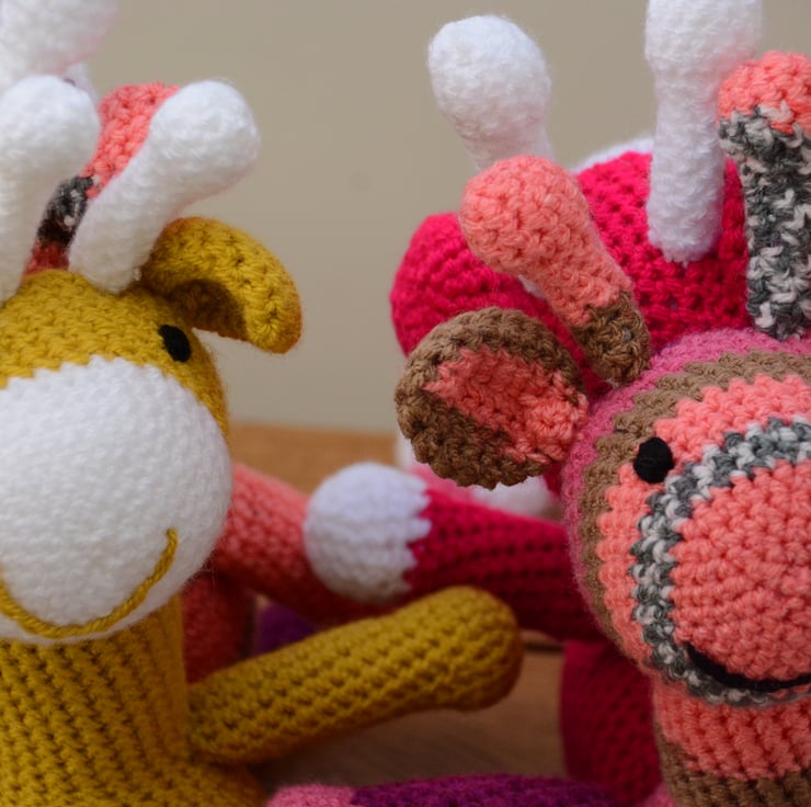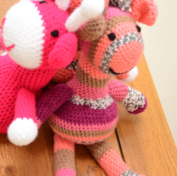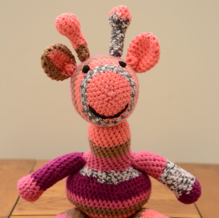 Hand crocheted Giraffe toy suitable from birth. Perfect baby shower gift. Made from acrylic yarn and polyester stuffing. Can be washed at 30 degrees. Toys are UKCA marked.