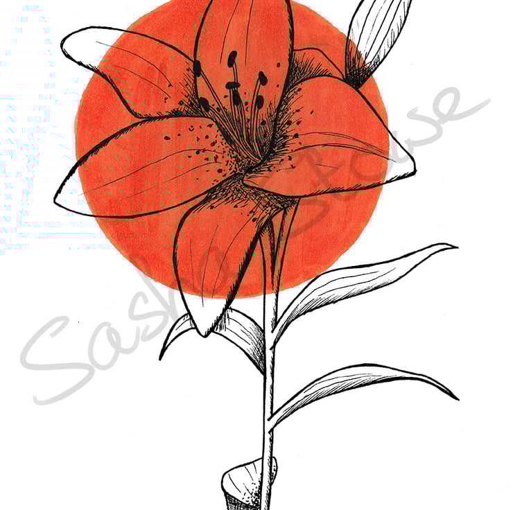 A beautiful greetings card with an illustrated minimalist tiger lily on it. The design and illustration was done by me and was inspired by Huevember 2018 when I matched up the day's colour with a flower. Original image was created with ink pen and either Copic or Promarkers.