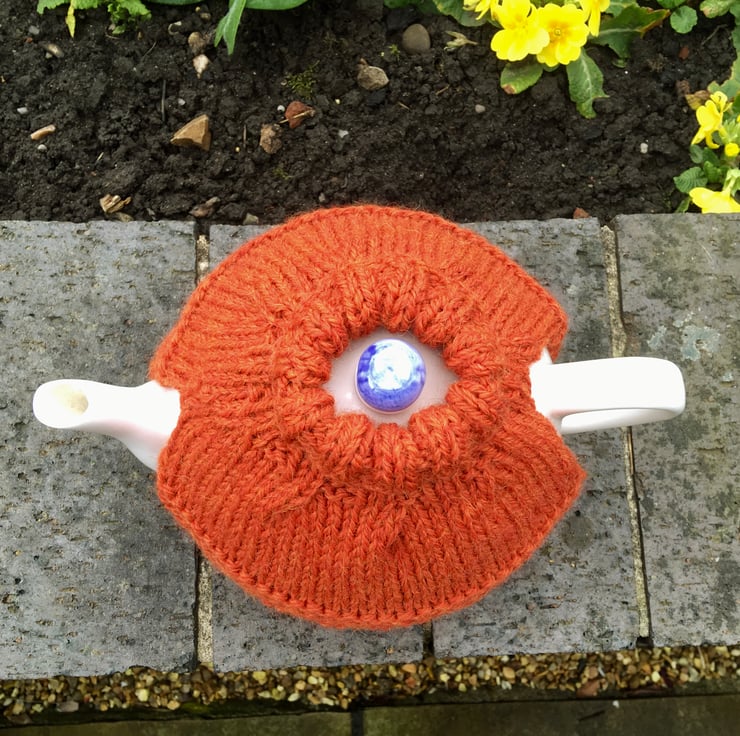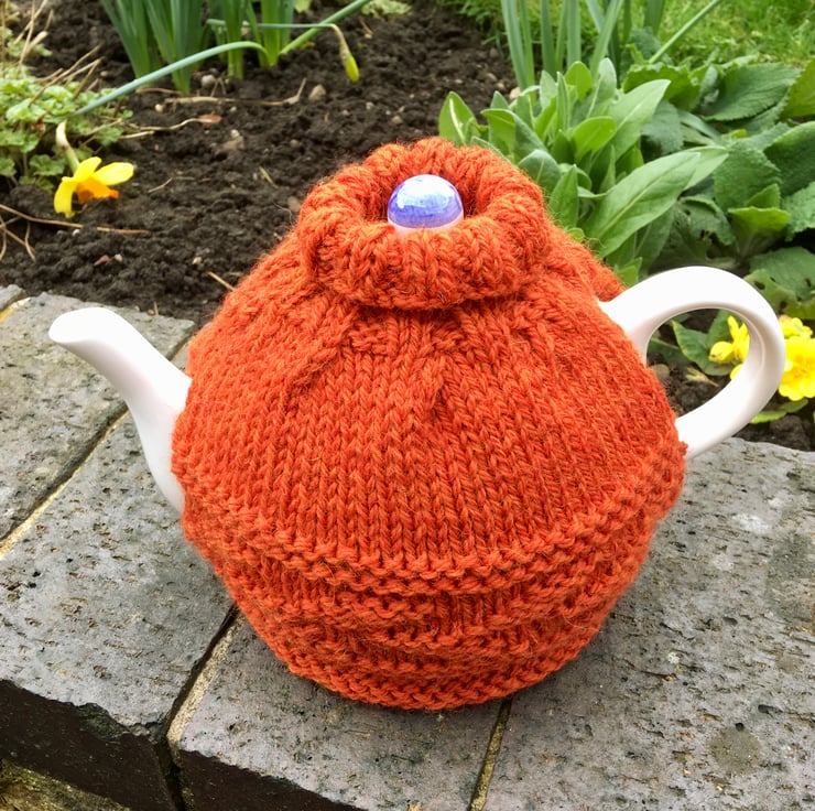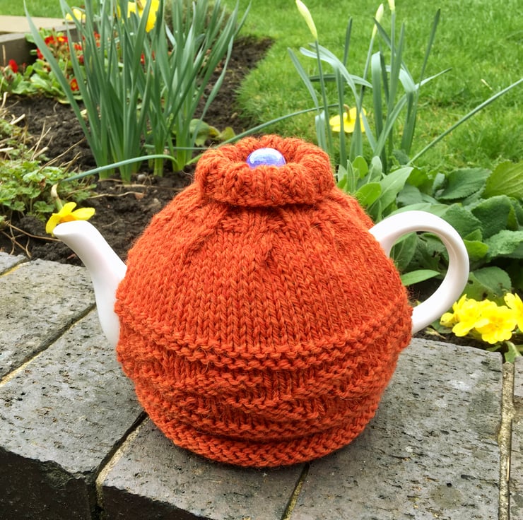 Hand knitted in a lovely luxury wool that is 65% wool and 35% alpaca. The tea cosy will fit a standard 4-6 cup teapot and the roll brim bottom allows for different heights of teapot. The roll down neck can sit nicely around the top of a teapot.