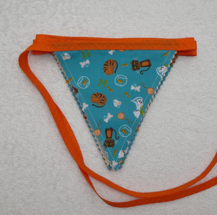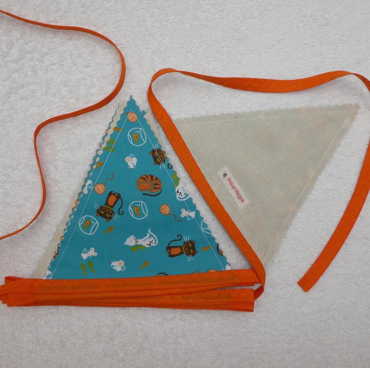 Bunting. Cats Goldfish and Mice. 3.5 m long and 12 flags. Lined.Orange Bias