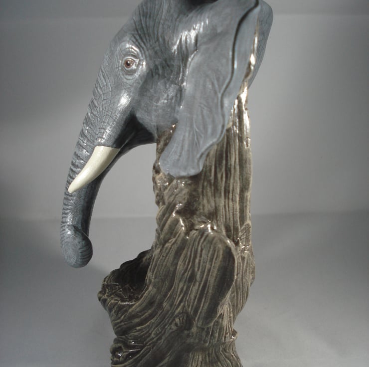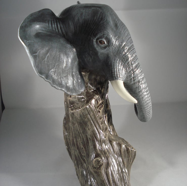 I have for sale a ceramic animal ornament, which was hand painted by myself. It looks like a piece of brown driftwood, with the start of an elephant being carved out of it, which has just the elephant's head and trunk showing. This would make a lovely addition to anyone's home, or perhaps given as a gift.