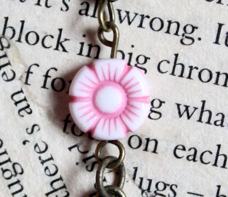 - white and pink flower bead