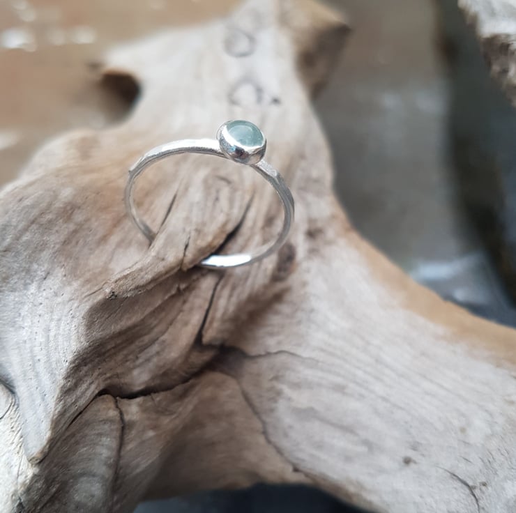 This pretty ring has a beautiful 5mm round Aquamarine gemstone.