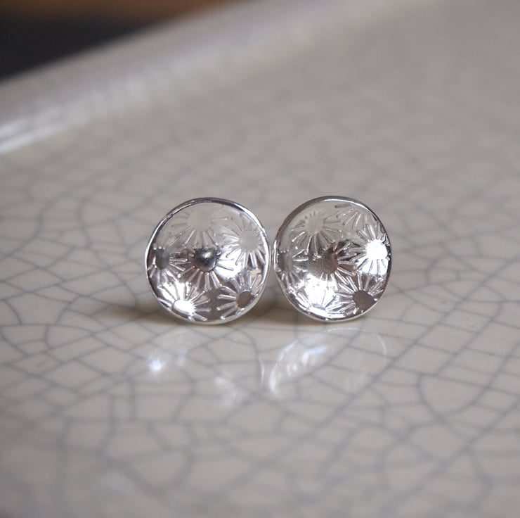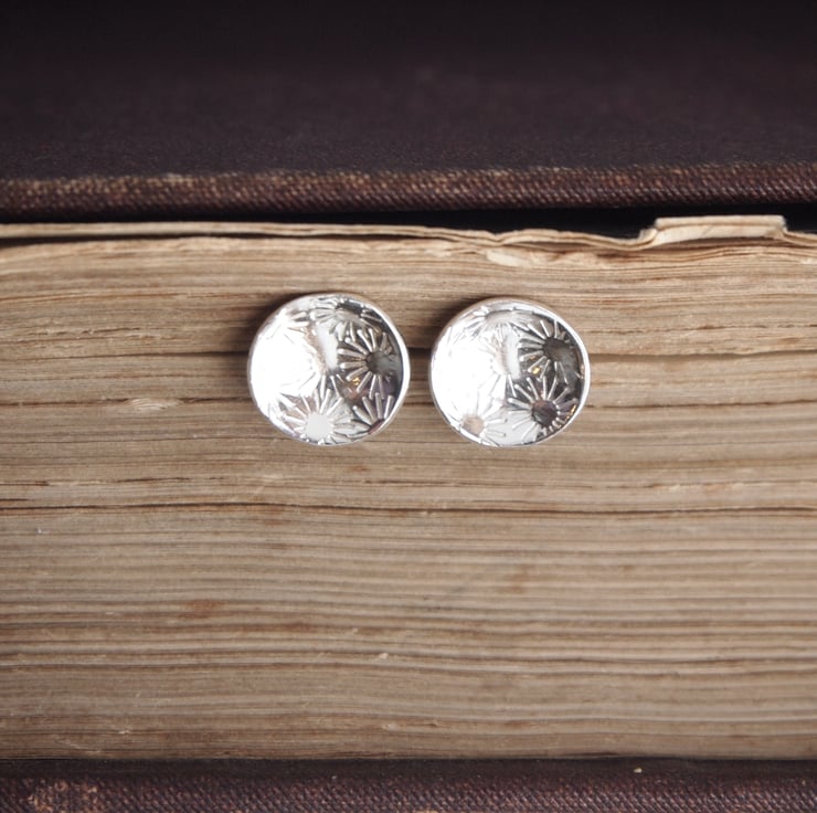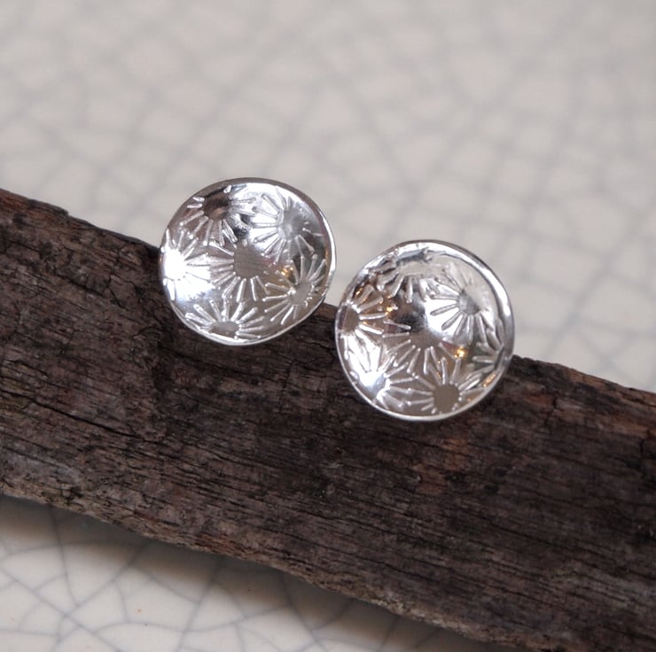 Pretty little silver stud earrings with a bunch of daisies punched into the silver disc.