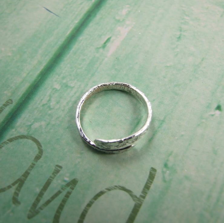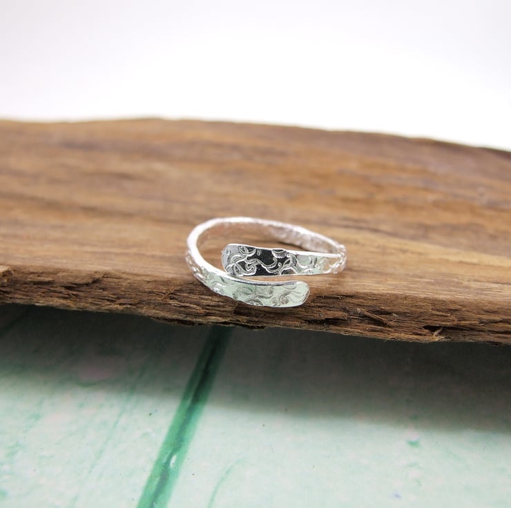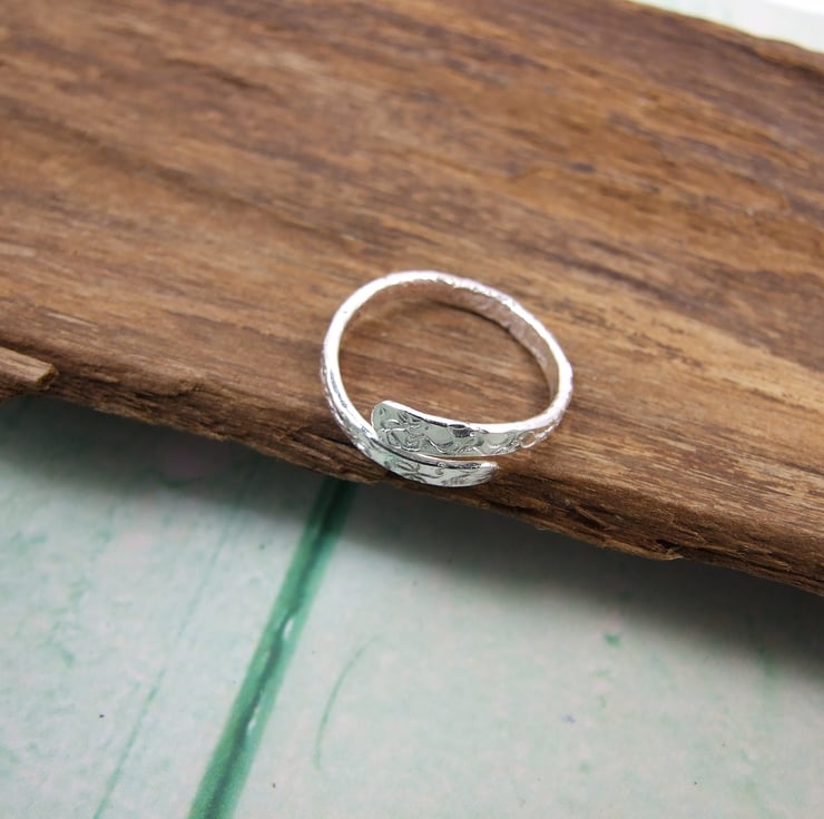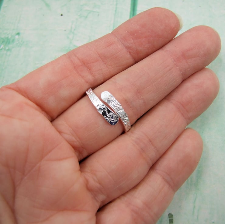 Hand Forged Sterling Silver Wrap Ring. Medium Fit.