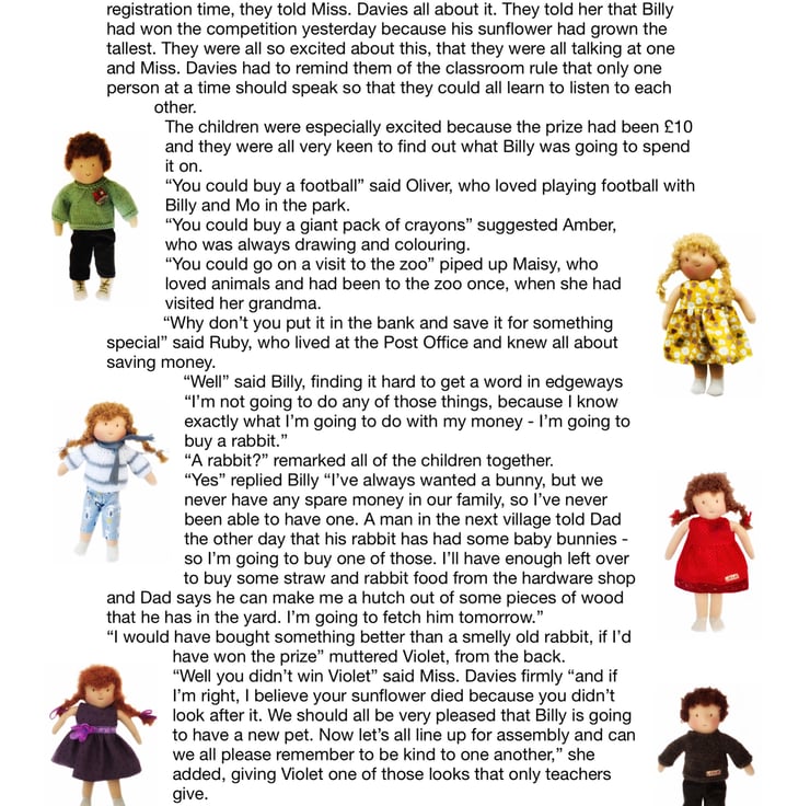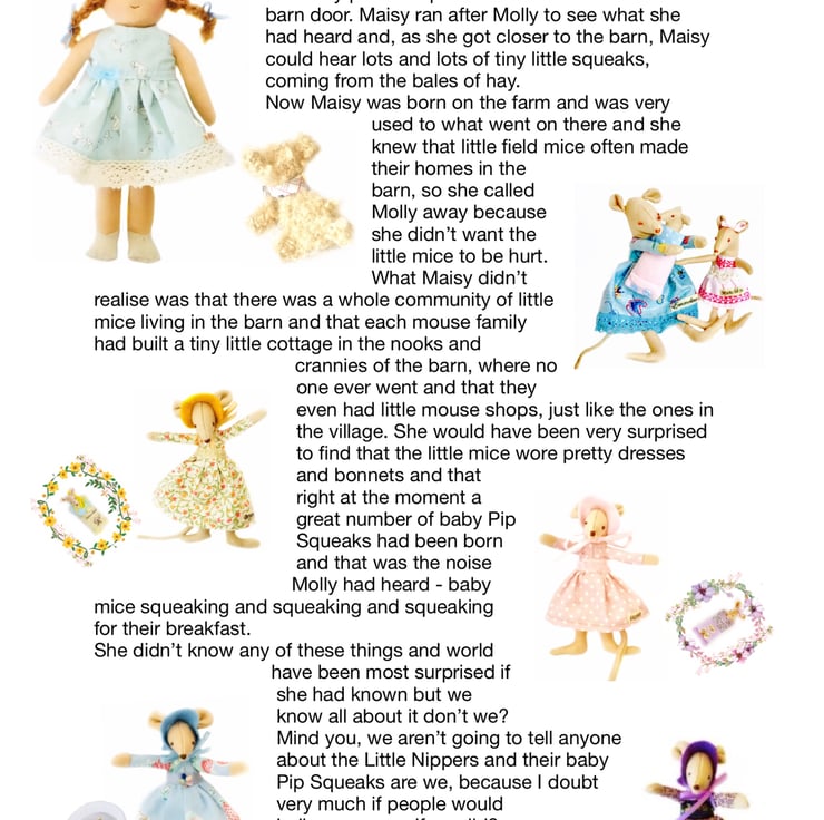 There are other children in Maisy’s class at school - Violet, Billy with his pet rabbit, Amber, Tilly, Rosie and her kittens, Amelia, Ruby, Marigold, Bobby with Max the dog, and the twins Oliver and Olivia, who have a puppy called Oscar. The dolls are all 26cm tall and baby Daisy is 16cm. Maisy and Mo love nothing more than having adventures with their friends. You can read about their adventures on my Facebook and Instagram pages - Maisy Muffin Rag Dolls and on my Mulberry Green Pinterest boards.