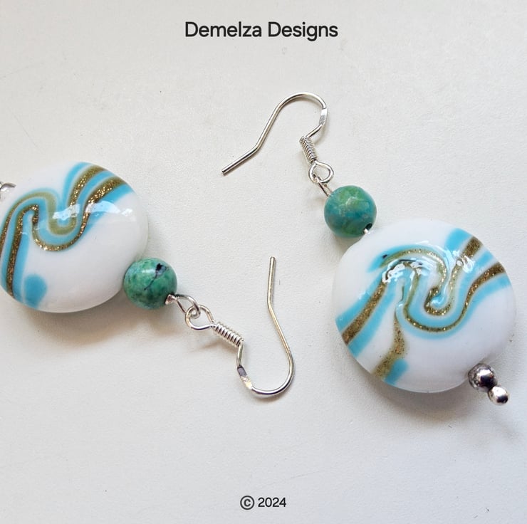 These earrings are protected by copyright design, including using different murano glass beads and gemstone types. All forms of infringement will be challenged.
