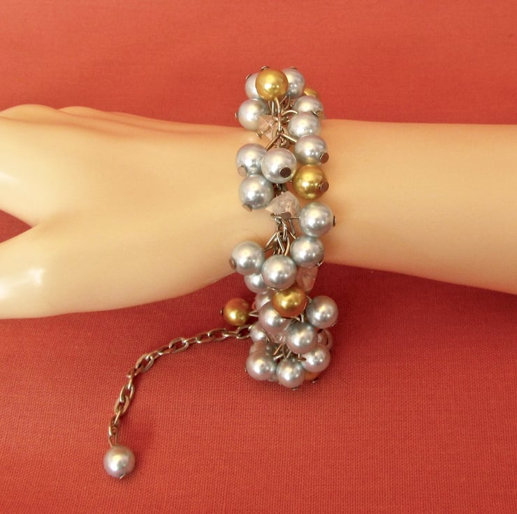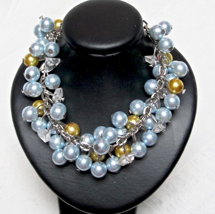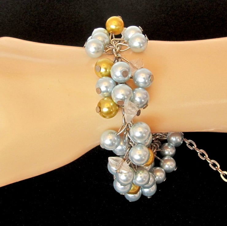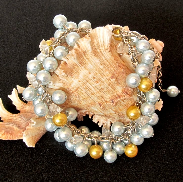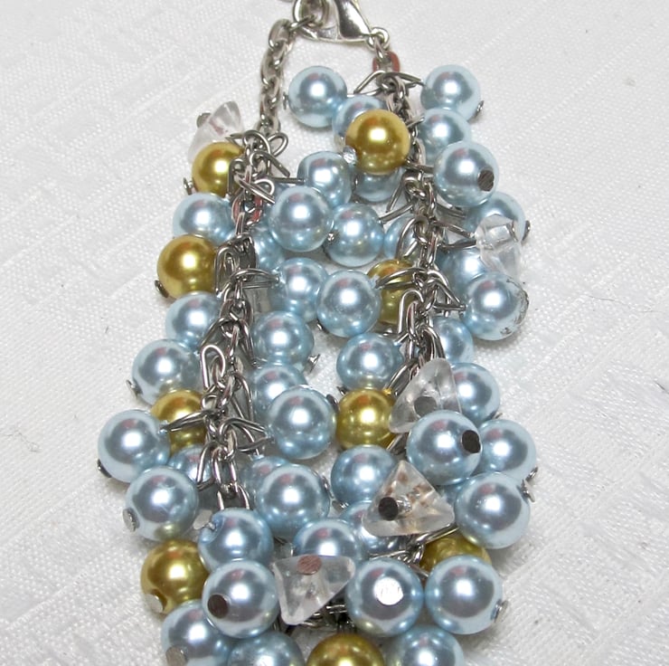 Cluster Bracelet with Light Blue & Golden Glass Pearls, Bridal Jewellery