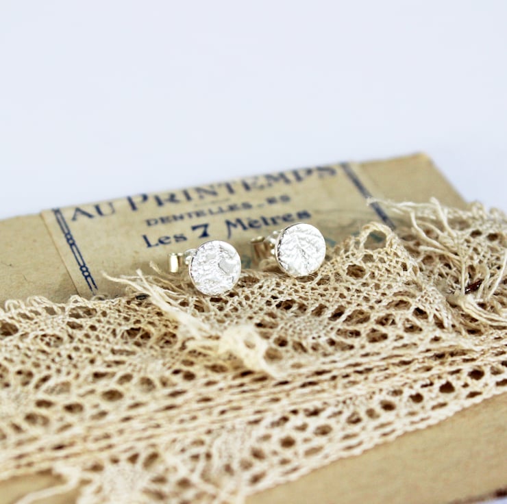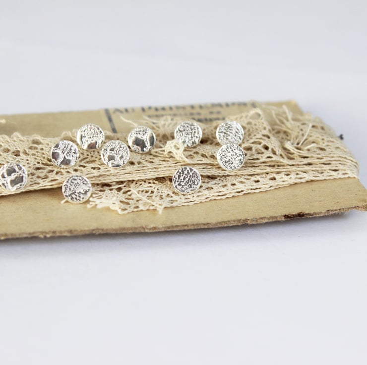 They measure a nice dinky size at 6mm in diameter. And the lace texture on these little earrings make them simple enough for everyday wearing and interesting enough to add a little special quality and sparkle to an average day.