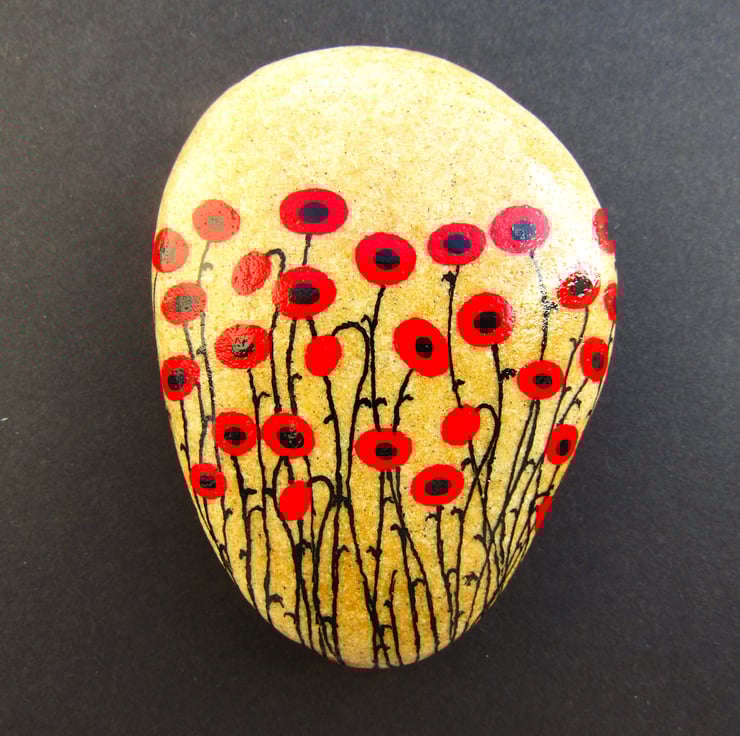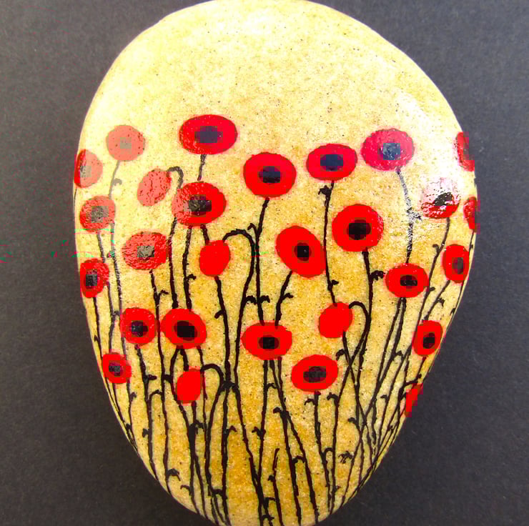 The pebble is painted with acrylic ink and protected with varnish (suitable for outdoors).
