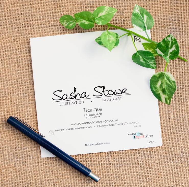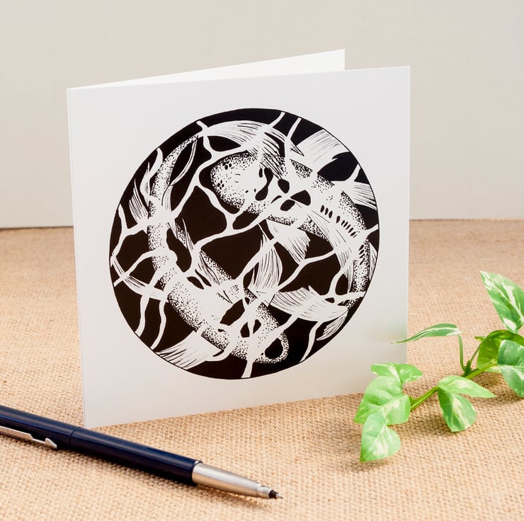 A beautiful and tranquil card with an illustration of two koi carp peacefully swimming. The design and illustration was done by me and was inspired by Inktober 2018 and the word 'Tranquil', hence the title of the card. It would make the perfect card for anyone who loves animals, as a Mother's Day or Father's Day, birthday, anniversary card...anything really. The card is blank inside so you can write your own message.