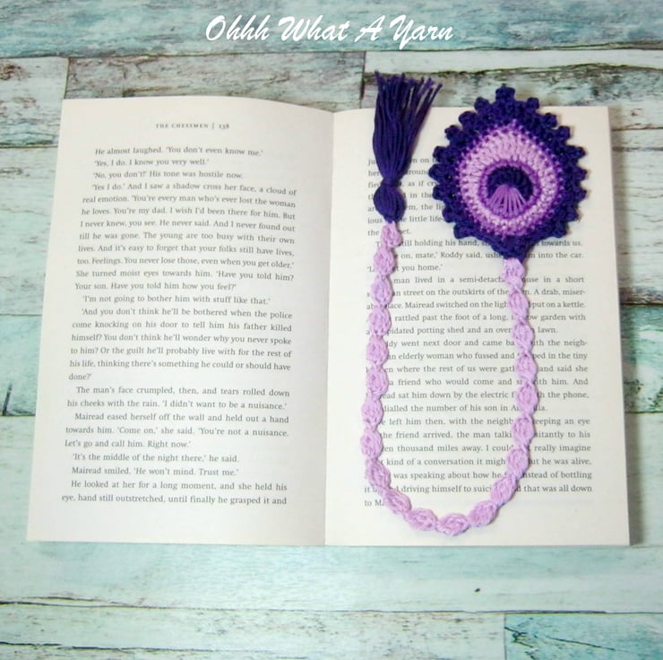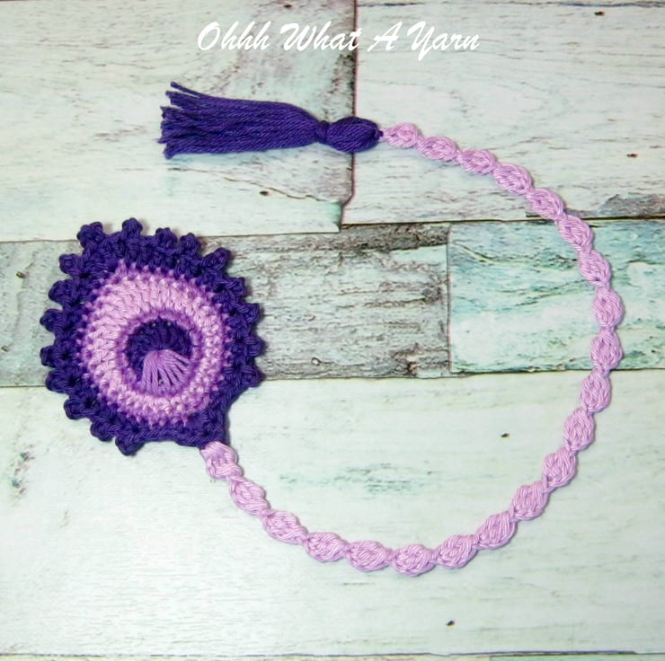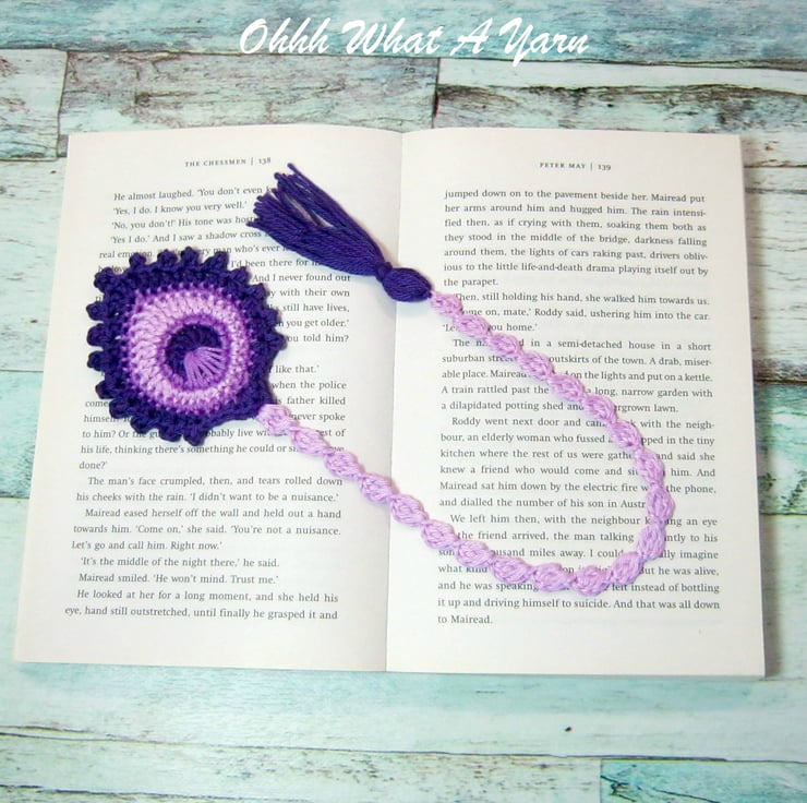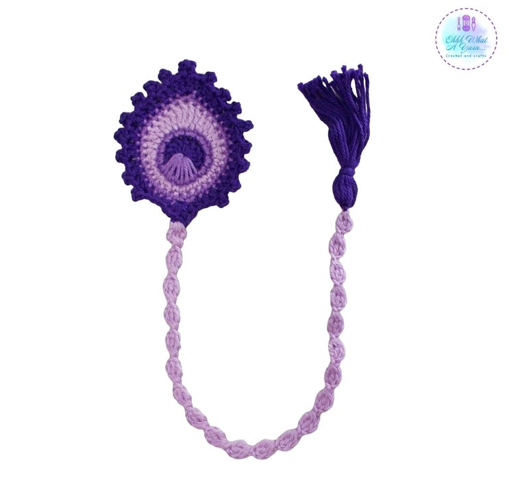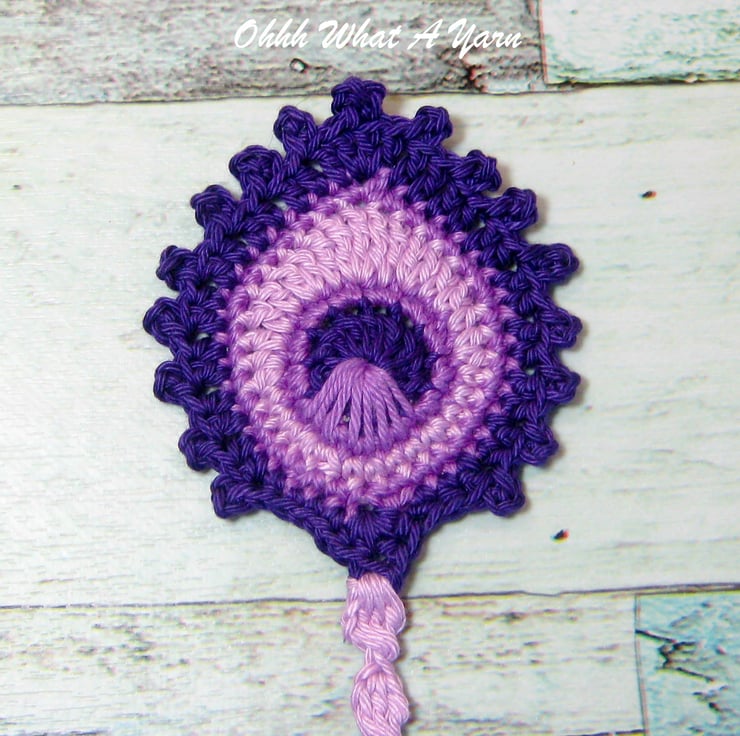 This stunning purple peacock feather bookmark is crocheted using premium 100% mercerised purple cotton yarns giving it a lovely sheen and stitch definition.